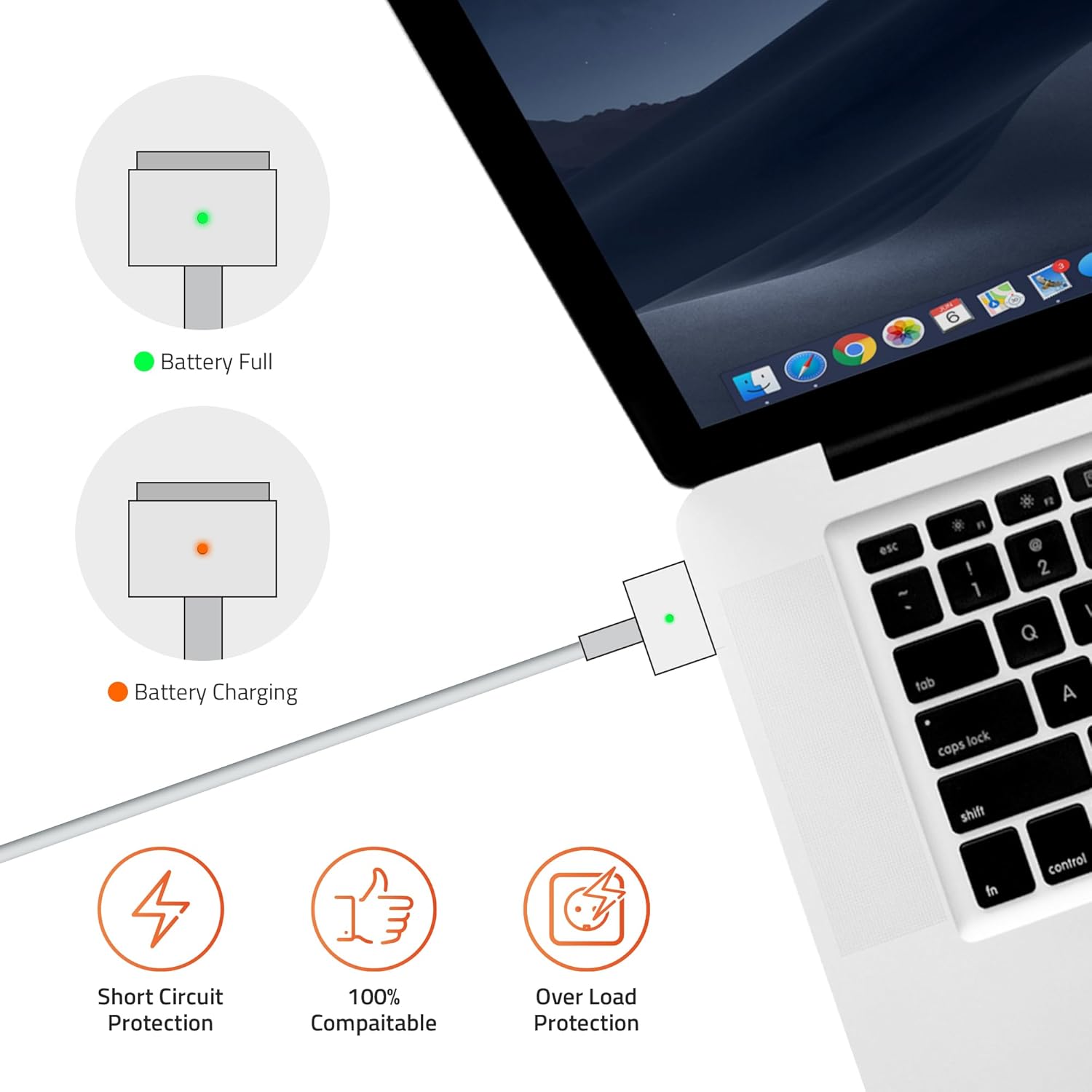 • Output: 45 Watts (14.5 V x 3.1 A), Pin: MG2 (T Shape), Input: AC 100-240 V ~ 1.5A(50-60Hz);Compatible with: Air (11-inch, Early 2015) , Air (13-inch, Early 2015) , Air (11-inch, Early 2014) , Air (13-inch, Early 2014) ,Air (11-inch, Mid 2013),Air (13-inch, Mid 2013) , Air (11-inch, Mid 2012) , Air (13-inch, Mid 2012)